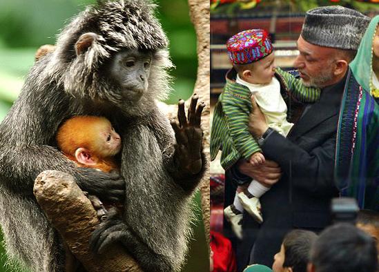 شما به کودک دوستی وبی تبعیضی کی بیشتر باور دارید؟ حامد کرزی و یا این میمون مادر؟