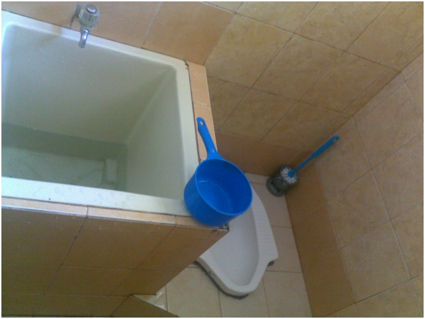Shower facilities used by 35 people