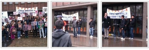 We, the participants of today’s protest rally, have gathered to denounce crimes against humanity and defend human rights and social justice, adapt the following resolutions: