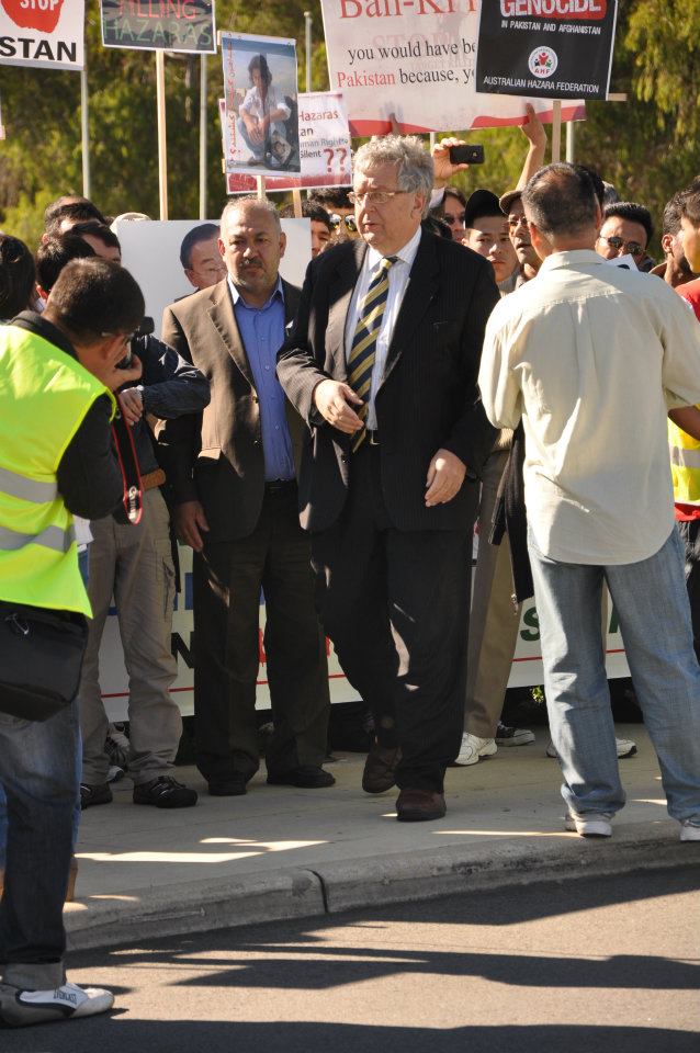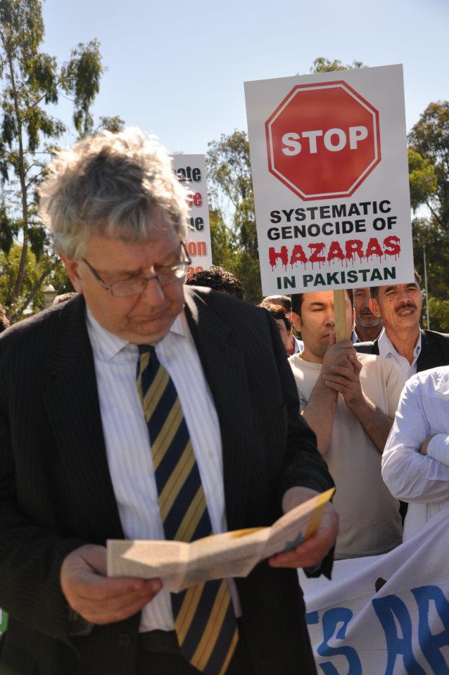 محترم آقایی "ایان رینتول" یکی از فعالان در امور مهاجرین نیز در جمع تظاهرات کننده گان سخنرانی نمود. وی نیز از حرکت مدنی هزاره ها تقدیر نمود و گفت که استرالیا باید صدای چهل هزار هزاره ای را که تابعیت کشور را دارند، نا شنیده نگیرد. باید دولت آسترالیا قتل هزاره ها در کویته پاکستان و سایر نقاط جهان را محکوم کند. وی ضمن تذکر نام یک شرکت کننده در تظاهرات که پسرو پدرش را در حال عبور در مسیر راه بدست جنایتکاران در پاکستان از دست داده است، گفت "پس باید دولت استرالیا قتل عام هزاره ها را به صورت جدی تقبیح نموده و برای توقف آن تلاش نماید.