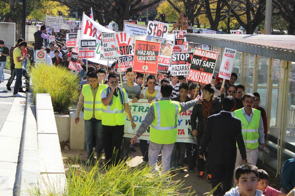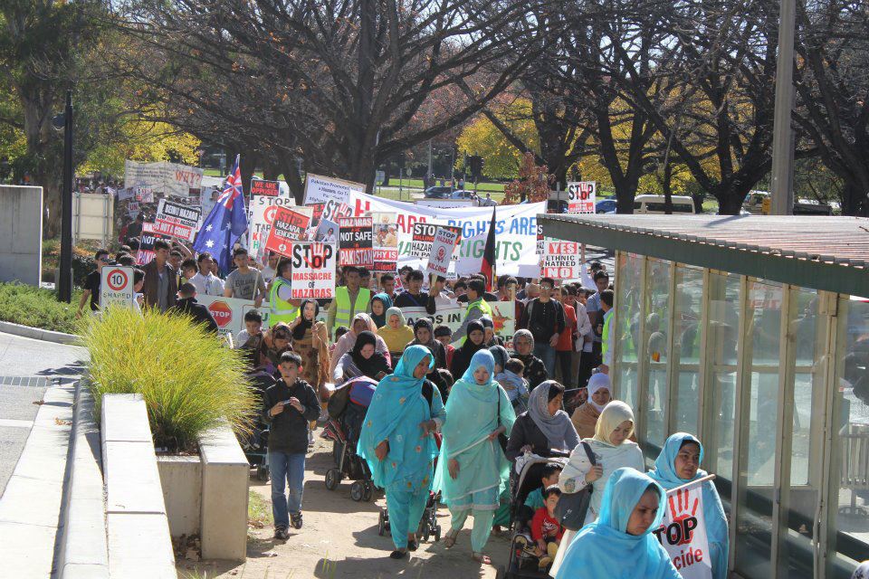 هزاره های مقیم استرالیا با مدیریت فدراسیون سراسری هزاره ها در این کشور(Australian Hazara Federation) از شهر های مختلف چون : سیدنی، ملبورن، بریزبین، ایدلاید، پرت و کانبیرا روزپنجشنه مورخ 10/05/2012 در پایتخت استرالیا (کانبرا) یک راه پیمایی گسترده را به راه انداختند. این راه پیمایی در بخاطر اعتراض و تقبیح نمودن سکوت پاکستان ، جامعه بین المللی، کشورها و ارگانهای حامی وطرفدار حقوق بشر، نسبت به کشتار بی رحمانه هزاره ها در کویته پاکستان توسط شبکه های تروریستی و گروه های تندرو افراطی، راه اندازی شده بود. در این راه پیمایی بیش از دوهزار نفر از سراسر آسترالیا شرکت ورزیده بودند.