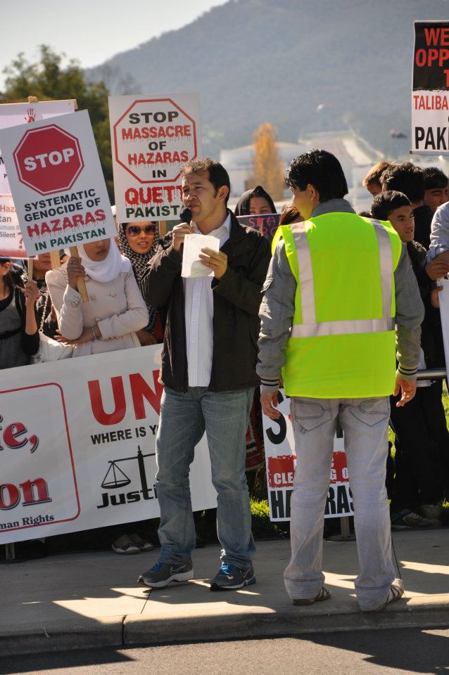 ما امروز اینجاییم تا دولت و ملت استرالیا، نماینده ای سرمنشی ملل متحد در اقیانوسیه و سفارت کبرای پاکستان در استرالیا را از رنج بیکران مردم خود در کویته پاکستان باخبر کنیم. ما اینجاییم تاراوی خون های بی زبانی باشیم که بی هیچ جرم از گلوی بریدۀ مردم ما جاری است. ما اینجاییم تاراوی اشک های آشکار و پنهان، ضجه های برخواسته از غم، تنهایی، بیکسی و مظلومیت مردم خود باشیم. ما امروز اینجاییم تا مسئولیت های انسانی این مقامات را به گوش شان برسانیم و به صراحت به آنها اعلام کنیم که بیشتر از ده سال است که آنها در انجام وظایف انسانی و حقوق بشری شان در قبال مردم هزاره در کویته و قرن هااست که در برابر ملیت هزاره در افغانستان کوتاهی کرده اند. فریاد های دادخواهی ما را کسی نشنیده و برای جراحت کشنده ای مرحمی نشده اند.