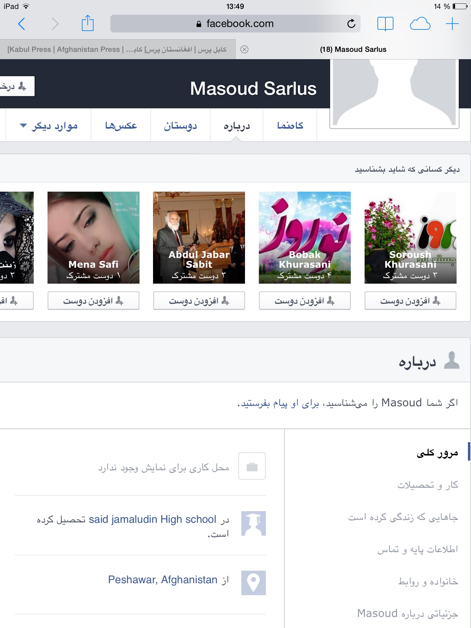 اگر زادگاه جناب مرادزي صاحب؛ كامه است پس چرا در فيس بوك زادگاه شانرا پشاور ضبط كرده اند؟