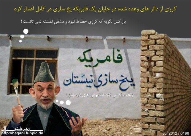 کــــرزی به احــــترام مــــاه مــــبارک رمضـــــان از دالـــــر هـــــای وعـــــده شـــــده در جـــــاپان یک فــــابریکه یخســــازی در کــــابل اعمـــــار کــــــرد