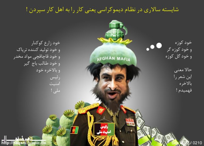 حکومت مافیایی کرزی اینجاست که مفهوم پیدا میکند. بر این مردم است تا این حکومت مافیایی را زیر بکشند و به عمر ان خاتمه ببخشند در غیر ان برده گی برای مافیا ادامه خواهد داشت.