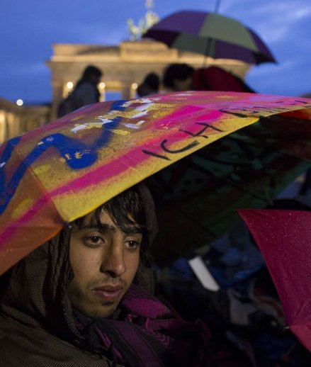 اعتصاب پناهجویان افغانستانی و ایرانی مقابل دروازه براندنبورگ برلین