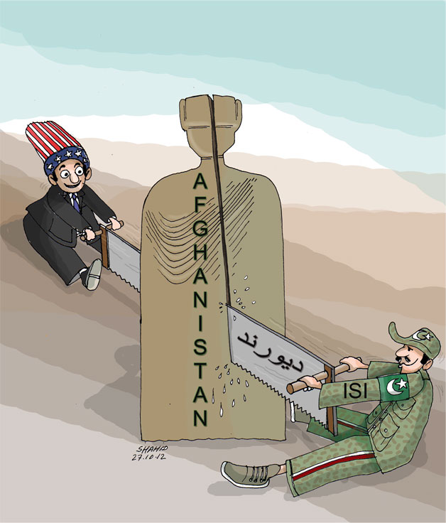 خط دیورند در 1893 در زمانی که امپراتوری بریتانیا حاکمیت بلا منازع در سرزمین هند قدیم داشت از یک طرف ( سر هنری مورتیمر دیورند) و امیر قاتل و سفاک افغانی امیر عبدالرحمن از جانب دیگر مورد تائید و موافقه قرار گرفت. انتخاب ای اس ای و امریکا نشان دهنده سطحی نگری کارتونیست از یک واقعیت تاریخی میباشد.