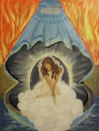 درین تابلو شما چادری را در قالب یک صدف مشاهده میکنید که زن در میان آن چون گهرو مروارید میدرخشد این درخشش زیبایی بیرونی زن نی بلکه نهایت پاکی و عظمت قدرت درونی زن را تصویر میدهد. همینکه زن بعد از خداوند خالق بشر است؛ خون زن سبب نشو و نمای بشر در رحم است؛ آغوش زن پناه گاه بشر است؛ شیر زن وسیلهء زنده گی و زنده ماندن بشر است؛عاطفهء زن دلیل خوشبختی و خشم زن سبب بربادی بشر است......این هم قدرت نامر ء ی است که در وجود زن نهفته است و در چشم دیده نمی شود اما از نور ان روز تا روز جهانیان اعم از زن و مرد بهره مند میگردند . اما هدف از ترسیم چادری و آب و زمین و آتش در عقب این صدف اینست که هر قدر دست ستم زن را بیازادرد به اب غرقش سازد ؛ زنده به گورش کند و یا به آتشش بکشد و یا در زیر برقع و یا چادری بپوشاندش این عظمت و توانایی را که الله تعالی به او ارزانی نموده است از او گرفته نمی توانند. این خلقت به امر پروردگارش خالق بدنبا می اید و خلیق این جهان را ترک گفته با خالقش میپیوندد.