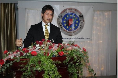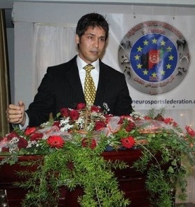 قرائت معرفی نامه مختصر حسین صادقی توسط غلام سخی ارزگانی در محفل اتحادیه ورزشی افغانهای مقیم اروپا در شهر هامبورگ جمهوری فدرالی آلمان