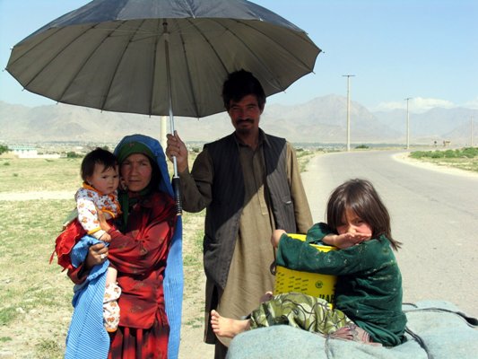 خانواده ای که در اثر حمله ی کوچی ها مجبور به ترک خانه خود شدند