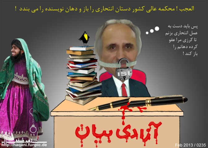 برای من به مشکل این قابل باور است که شما فقط برای پر کردن جای طالبان در زندان های کابل مردم بی گناه را در بند بکشید ولی با آنهم این سوال برایم پیدا می شود که آیا کسی دیگری برای این کار پیدا نمی شد که شما نویسندگان ، شعرا و ادیبان کشور را جانشین طالبان می کنید !؟