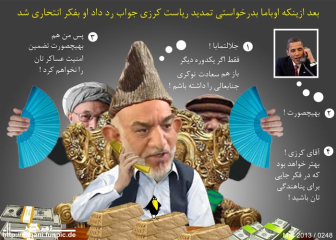 درخـــواســـتی تمـــدید ریاســـت کـــرزی از طـــرف اوباما باعـــث هـــذیان گـــویی و فکـــر انتحـــاری برای او شـــده