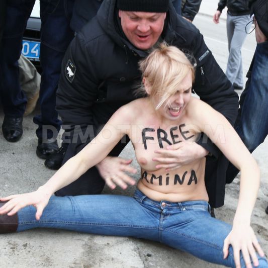 شعارهای را که تظاهر کننده گان جنبش (فیم) بربدبهای لخت خویش حک کرده بودند عبارت بودند از: "ما آزادی امینه را میخواهیم" بدن من مال خودم است" بگا.یم مورال واخلاقت را".