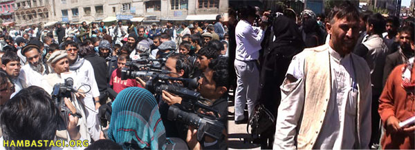 جواسیس امنیت ملی، یکایک تظاهرکنندگان را با بینزاکتی چندین باره بازرسی بدنی نموده بعد اجازه ورود میدادند. آنان اعلامیه های چاپی حزب را از نزد افراد ما گرفته پاره پاره کرده بر زمین انداختند. پلاکارتهایی حاوی تصاویر مقامات بلندپایه دولتی و شعارهایی را که با مذاق جنگسالاران خوش نمیخورند ضبط نموده در وسایط پولیس انداختند.