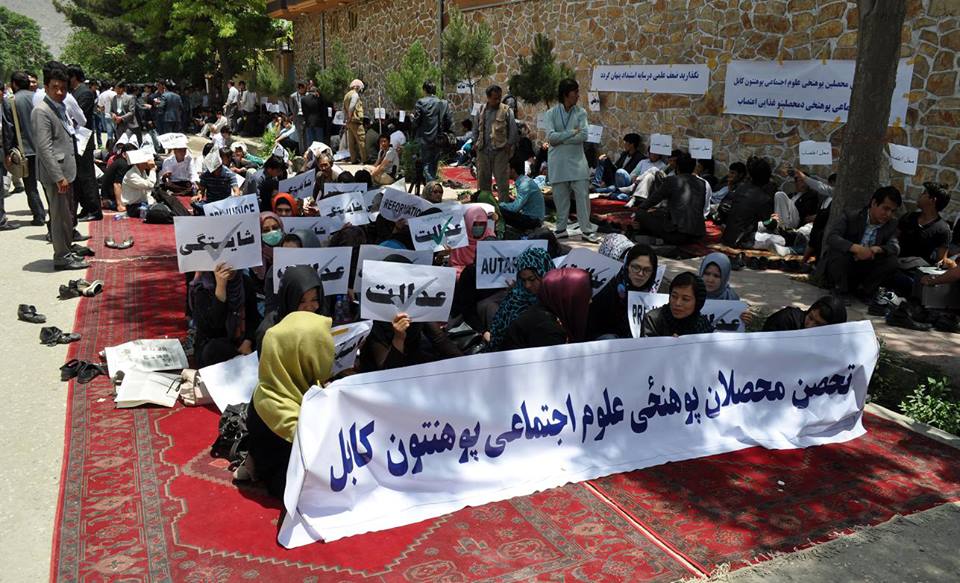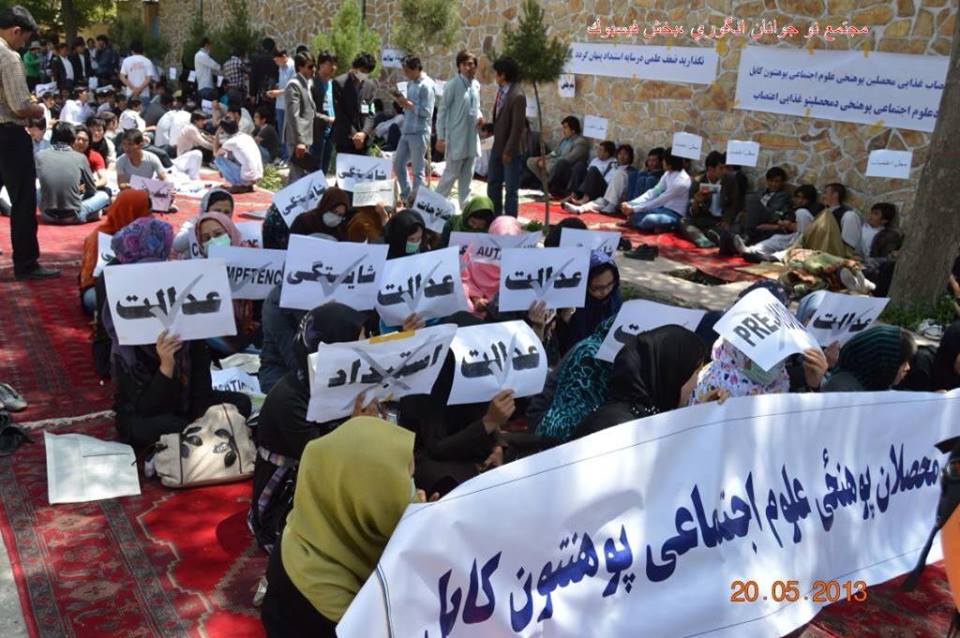 ده ها دانشجوی دانشکده ی علوم اجتماعی که از روز گذشته در اعتراض به تبعیض نژادی گسترده در دانشگاه کابل بويژه دانشکده ی علوم اجتماعی دست به اعتصاب زده بودند، این اعتصاب را برای دومین روز ادامه دادند. خواست های دانشجویان مشخص است و آنان خواهان برچیده شدن تبعیض، تعصب و استبداد در دانشگاه می باشند. آنان می گویند دانشگاه مکان آموختن دانش و علم است و نه جایی برای افرادی متعصب، نژادپرست و کم سواد که به دانشجو از عینک قومی نگاه می کنند. آنان می گویند وجود چنین افرادی باعث شده است که دانشگاه کابل هیچ جایگاه علمی را نداشته باشد. دانشجویان خواستار برکناری فوری غلام فاروق عبدالله رییس دانشکده علوم اجتماعی به دلیل صعف مدیریت، فساد اخلاقی و تعصب می باشند.