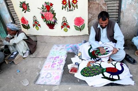 يو سړی د کابل به کوتی سنګی سيمه کی ګلدوزی کوی ترڅو خپل ژوند په مخ بوزی