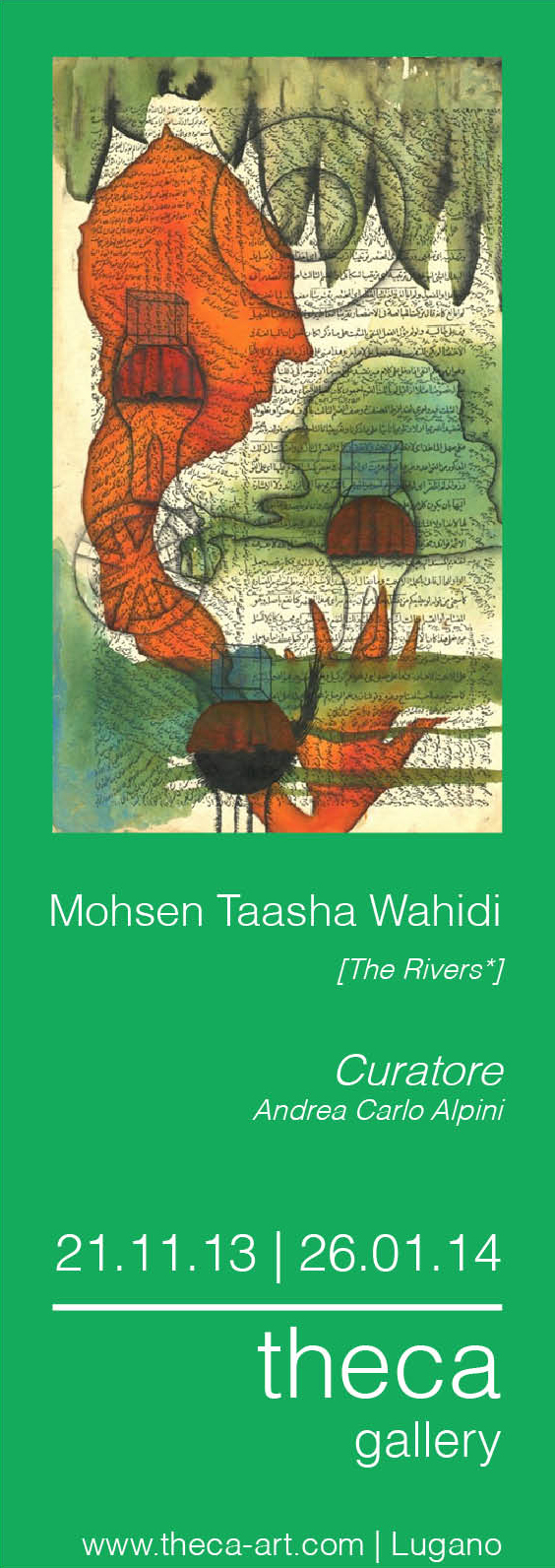 There are three major rivers in Mohsen Taasha Wahidi’s life: the Kabul, which gives its name to his hometown, The Meno, which bathes the strip of land around Kassel (Germany) where it was held his most important exhibition, dOCUMENTA13, and Ticino. The latest is the river that gives its name to the canton in which there is Theca Gallery, in Lugano, where it helds his solo exhibition [ The Rivers ]. The exhibition brings together works produced between 2009 and 2013 by the young Afghan artist. Some of the works are from the now celebrated exhibition of dOCUMENTA13 (2012), and others come from the solo exhibition that was held at the French Cultural Center of Afghanistan (FCC) in Kabul, Afghanistan, in April this year (2013) and significantly entitled “Reminiscence”, in which it is presented a new series of miniatures produced by Taasha, where sacred tradition and culture Hazara are mixed in wise colors. Mohsen Taasha Wahidi was called to work for his exhibition of dOCUMENTA 13, Kassel (Germany), directly by the director Carolyn Christov-Bakargiev, which then she has organized his solo exhibition in Kabul dOCUMENTA 13, curated by Andrea Viliani (now director of Museum MOTHER Naples) and Aman Mojadidi. The Lugano exhibition was curated by the gallery itself, Andrea Carlo Alpini, given the close link with the artist. Significantly it is entitled ” Mohsen Taasha Wahidi : MAIN d13 | one KABUL ( … ) two Tessin [THE RIVERS ] .” The purpose of the exhibition is threefold. On the one hand give a retrospective at the Swiss and international collections of the best work of the artist, on the other hand is aimed at the production of the artist’s first thoughtful catalog, and then resume the relationship with the history of contemporary art through few items. Among these factors indicative is the importance of the figure of Alighiero Boetti and his relationship with Afghanistan and writing, and then the relationship with the literary roots, namely the poem “The Rivers” by Giuseppe Ungaretti, in which the poet recounts his history in many bathrooms in the rivers of his life. Tribute to these two great figures of Italian culture are the two quotes in the title, the “one Kabul” (Hotel) by Alighiero Boetti and [THE RIVERS] ending the selected title. The exhibition will also feature the work “AIIEOOEI LGHRBTT [portrait]” specially commissioned by the gallery to the artist for the exhibition. Theca Gallery Lugano decided to expose the Afghanistan artist this winter, Mohsen Taasha Wahidi, as well as in Lugano in three other different curatorial areas. “Memoriae” is the title chosen for the exhibition organized always by Theca Gallery at Art Market Fair Budapest, Hungary, the next month of November. Here the artist will be exhibited with the artists Federico De Leonardis, Claudia Scarsella, Simone Dulcis and Jonathan Guaitamacchi. Another winter exhibition of the artist will be the exhibition curated by Delia Vékony “The Grand Migration”, also in Budapest, Hungary. The last public exhibition that will be presented at Paratissima “PIX 09″ in Turin, where they will be exhibited three works, resulting from exposure of German Documenta13, such as “Death or a New Beginning” and “Memoir Of A Generation.” Watercolour on wrapping paper and clay the first, watercolor on paper and calligraphic the second, while the exposure will be completed by the work “The Reddish Essence.”