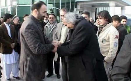 و ابوطالب،دست های خامنه ای، آدمکش قرن حاضر، را بوسیدند، برخی مثل استاد واصف باختری و پرتو نادری و .. حتا بر رکاب وزیر و استاندار و قوماندان تنظیمی، بوسه زدند، حتا به شغل شریف مشرفی« یعنی خبرچینی» روی آوردند.یکی دو عکس را عجالتا تقدیم میکنم: