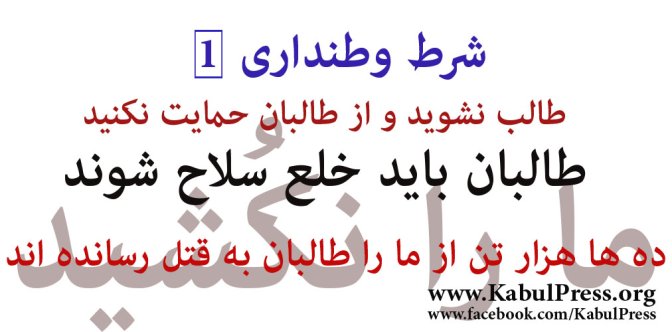 به نظرم شرایط بالا معقول و همه پسند است، کسانیکه یا طالب استند و یا میخواهد از طالب حمایت بکنه، در قاموس افغانیت جای ندارد... کاشکی در پهلوی این شرط یک کلیمه دیگه هم اضافه مینمودید، که افغان باشیم و برای افغانستان عزیز خدمت کنیم ...