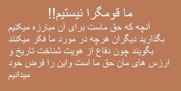 پس بيائيد كه فرهنگ حاكمان كوني اين سرزمين را به زباله دان تاريخ بسپاريم، انسانهاي متمدن شويم آنگاه زن ومرد اينكشور را از قيد عبوديت قبيله بسوي توحيد ويگانگي، پيشرفت وترقي ، آزادي هاي فردي واجتماعي رهنمون شويم