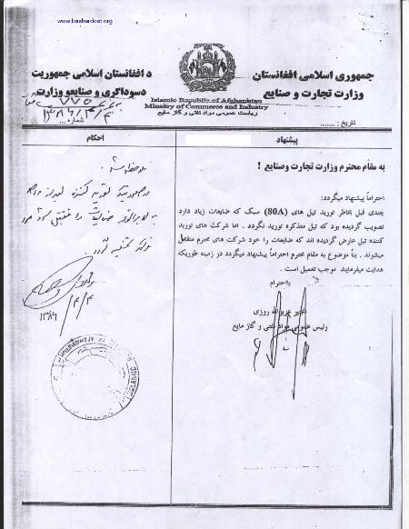 dear brothers and readers infact we are responsible for all these crisies why we are responsible i tell you. beradran-e-Aziz barayee ayn hama ma maswool hastaim chera mardoom bar alai ayen khayenan qad-e-Alam Namekoonand chera bara yee froopashi ayen Neezam-e-Fasid ba ham yak dast nameshawand. emrooz bedoon-e-reshwat kasi haq-e-haqayee khod ra ba dast awarda nametawanad. emrooz hama an chi waqi meshawad ma maswool hasteem ma bayad ayn zalima ra nagzarim ta bar ma Hakoomat koonad. pas zalim anha nestand ma khod zalim hastim ke zoloom ra bar khood qabook karda yeem. hama kasani kar dar ayn dawalt saham darand khayen astand ba gooftayee beradar ma agar kasi 100 Afghani reshwat bokhorad bayad ba Mahkama kashanda shawad dar hale kee kasani ke ba mellon ha dalar reshwat mekhorand bayad dar rase qoodrat bashand wa degran ra ba Saranwai wa ba mahkama bekashanand. pas zalim ma hastem pas maswool ma hastim. dar degar keshwar ha agar yak wazir wa ya rayesh jamhoor yak takhati jozyee meekoonad tamami melat bar ali shan qade alam mekoonad wali dar Afghanistan be adabi Maaf agar kasi Melat ra sawar ham mesha melat aram ast.
