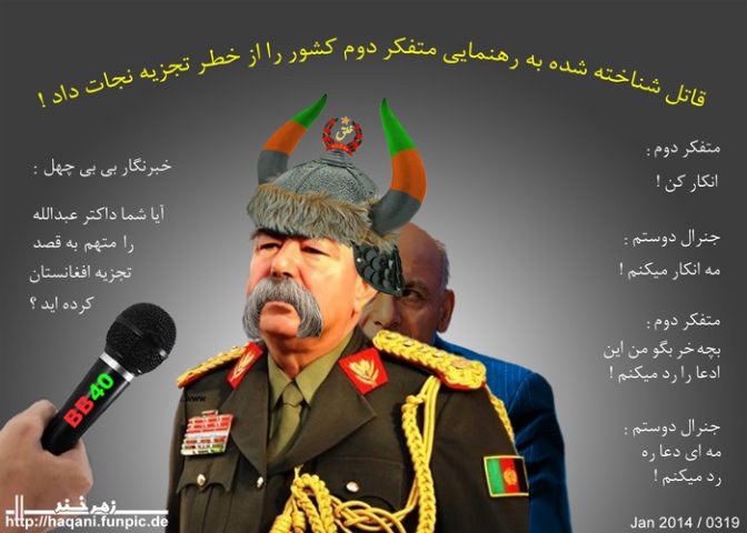 شاتوت ازحقیقت انکارداری ؟؟؟، سازمان جهنمی آ ی اس آی ، اول آقای محقق را جزب و ازصف اتحاد بیرون انداخت ، جنرال دوستم د ر آخر کار تصمیم گرفت . گناه اول ازشما از دوکتور عبد الله است