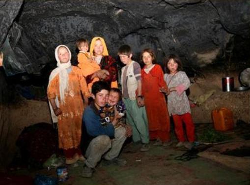 A young mother with her children live in a cave near the giant Buddha statues in Bamyan.