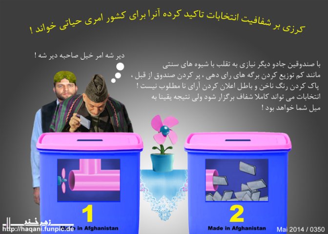 اما او باید خدا را سپاسگذار باشد که از برکت وجود یک مغز متفکر در کشور و مغزک های متفکر در کمیسیون مستقل انتخابات و اختراغ صندوقین جادو برای دور دوم انتخابات به سادگی می تواند دو خربوزه را به یکدست گرفته هم لعل بدست آرد و هم دل یار نرنجاند چون با وجود صندوقین جادو دیگر نیازی به تقلب با شیوه های معمولی و سنتی چون از قبل پرکردن صندوق ها ، کم توزیع کردن برگه های انتخاباتی ، پاک کردن رنگ از ناخن و یا باطل اعلان کردن آرای نا مطلوب نیست.
