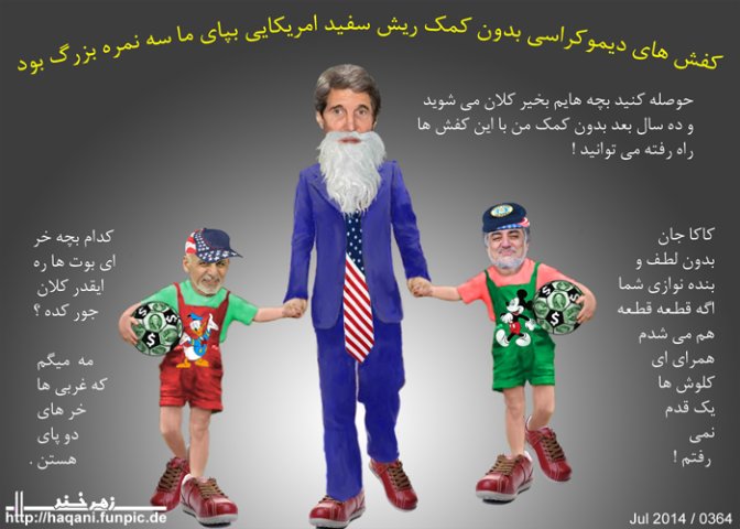 اینجا بود که جان کری متوجه عمق معضله یعنی اشتباه بزرگ صدور دیموکراسی در کشوری چون افغانستان گشت و برای اینکه لعل بدست آرد و هم دل یار نرنجاند ، هم بینی خمیری برای دولت امریکا درست کند و هم بجای کفش دیموکراسی چپلی وطنی به پای سیاستمداران افغان کند پدیده جدید حکومت وحدت ملی را به میان آورد که در حقیقت قومکراسی و سهمیه سالاری را جاگزین دیموکراسی و شایسته سالاری کرد .
