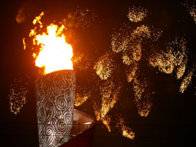 O grande mistério da cerimônia só foi desvendado após mais de quatro horas de festividade. O ex-ginasta Li Ning, dono de três medalhas de ouro, duas de prata e uma de bronze nos Jogos de Los Angeles-1984, foi o último a receber a tocha olímpica, foi elevado através de cabos e deu a volta no topo do estádio, como se estivesse correndo, até alcançar um pavio, que acendeu a pira depois de 244 minutos de cerimônia.