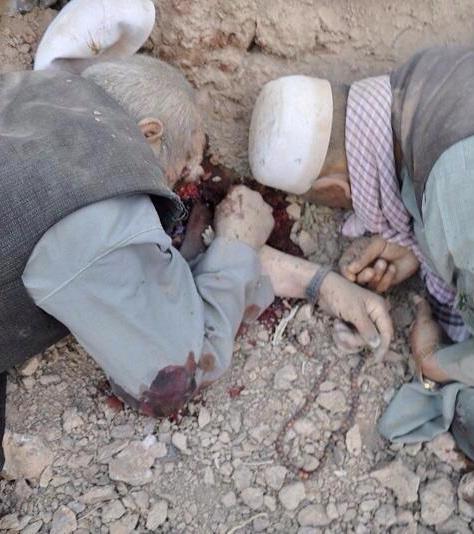 این تصاویر دلخراش هموطنان بیگناه ما که به جرم هزاره بودن به قتل رسیدن را به سرور دانش, دوستم و ضیامسعود و دیگر احمق های هرازهء تاجک و ازبک که طرفداری و خایه مالی فاشسیت خر احمدزی را میکندد نشان بدهید.