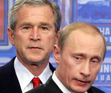پوتین: آقای بوش حرفت را فهمیده بزن! این تو بودی که از شانزده سال بدینسو در زیر پرده با ما در مسئله اروپایی شرقی، افغانستان و عراق توافق کردی و توافقات خود را همیشه زیر پای نمودی، ما هم از شما یاد گرفتیم!!