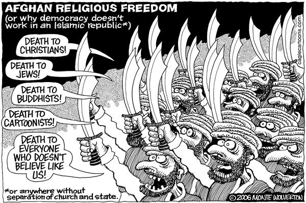 In Islam, the domain of beliefs is so widespread that it covers everything from God and the prophet to Ali Khamenei prostate and Mullah Omar’s blind eye. It goes without saying that under such circumstances, simple matters like making a movie, drawing a cartoon, taking a picture, listening to music and many otherwise normal acts are now considered an insult on religion. It shouldn’t be like that.