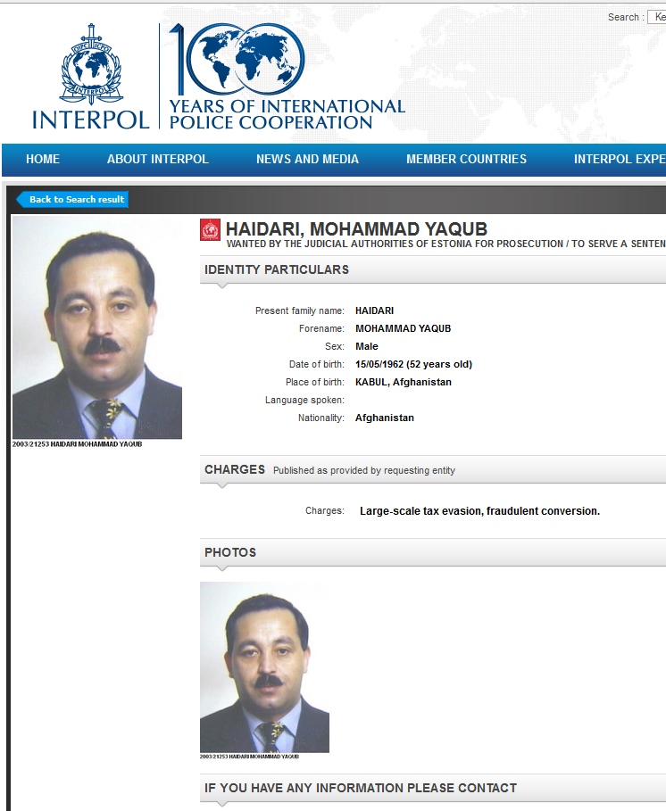 گویی محمد یعقوب حیدری که تحت تعقیب اینترپل می باشد، توسط احمد ضیا مسعود معرفی شده است.