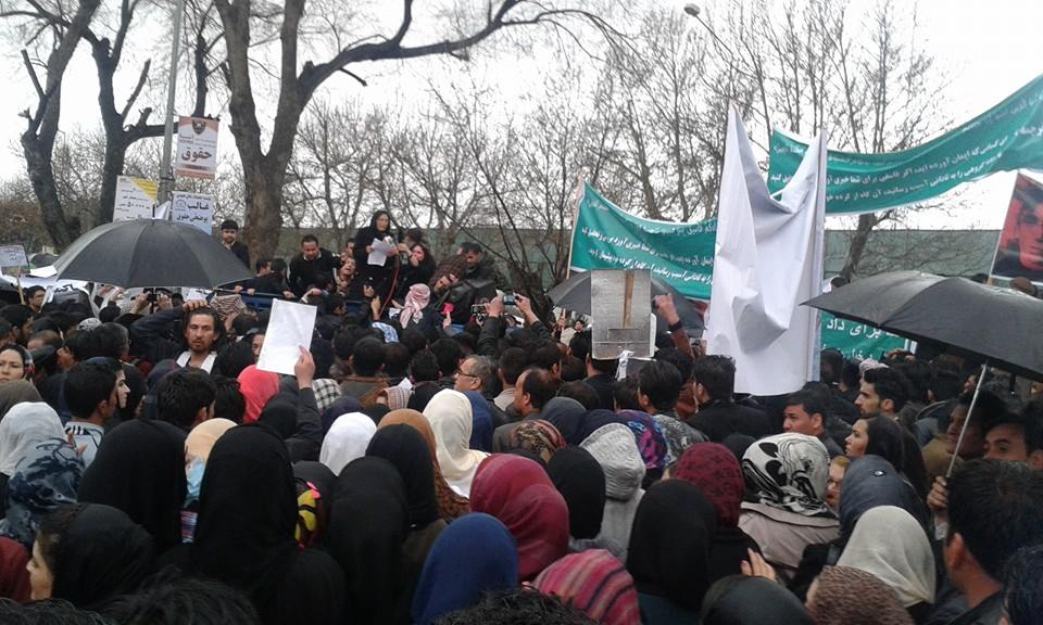 امروز سه شنبه 24 ماه مارچ 2015، هزاران تن از شهروندان کابل بويژه زنان، با برپایی راهپیمایی وسیع در دفاع از انسانیت، خواستار برقراری عدالت و محاکمه ی عاملان قتل فرخنده شدند.