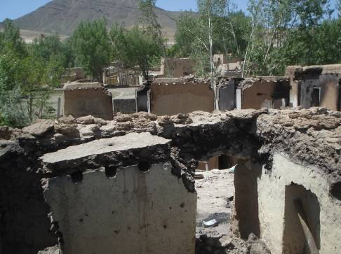 خانه مردم هزاره غارت شده و به آتش کشیده شده توسط کوچی