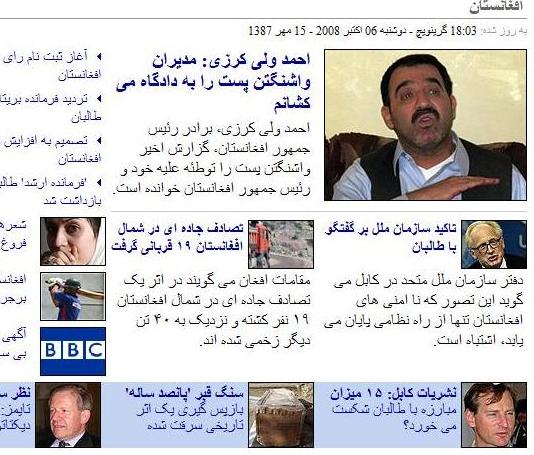 کابل پرس?: بخش فارسی وب سایت بی بی سی بنگاه سخن پراکنی بريتانيا، در آخرين ساعات روز ششم اکتبر سال 2008 خبری را در صدر اخبار خود با اين عنوان منتشر کرد: "احمد ولی کرزی: مدیران واشنگتن پست را به دادگاه می کشانم".