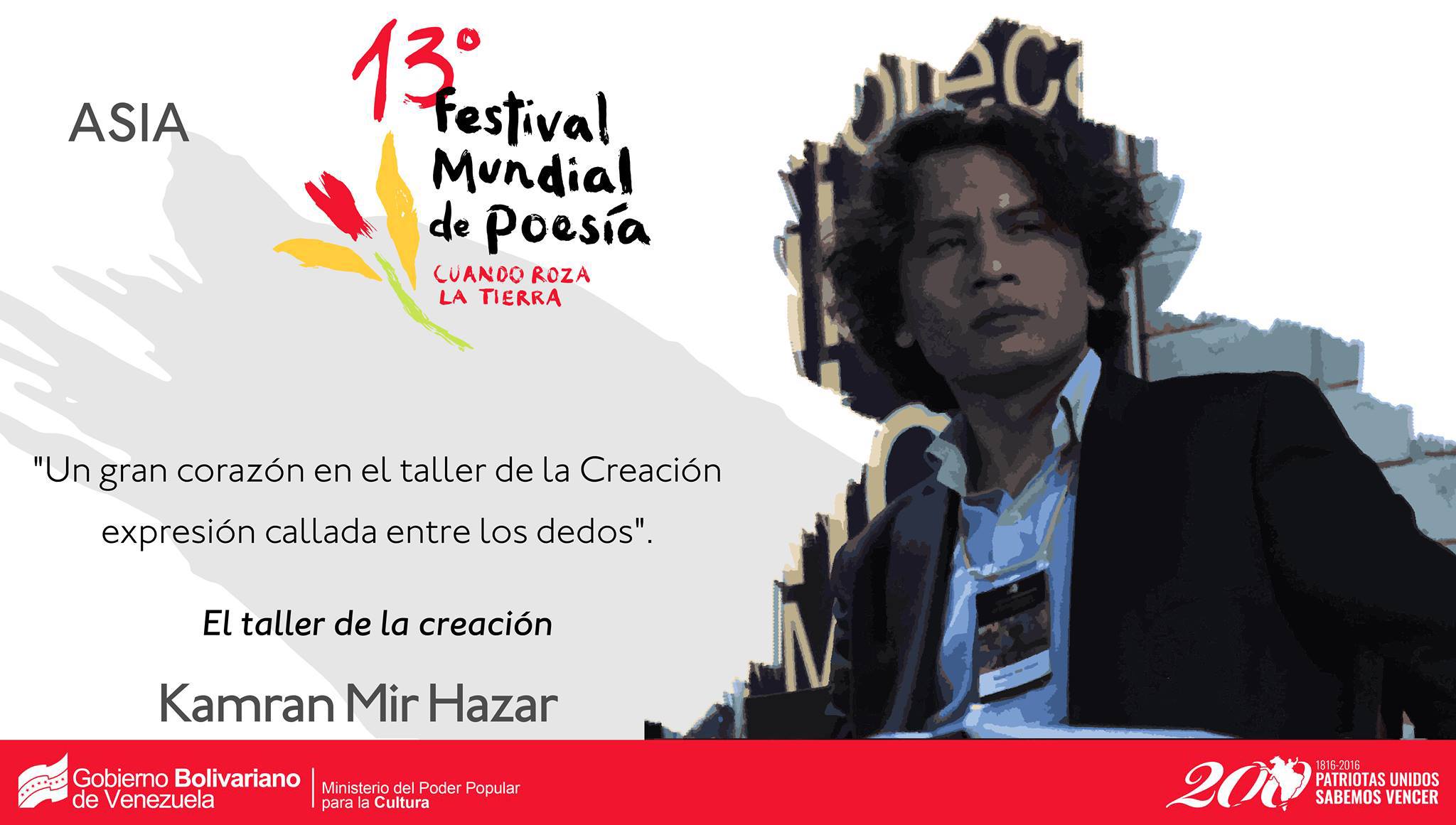در ماه جون سال 2016، کامران میرهزار به دعوت مدیر فستیوال بین المللی شعر کاراکاس ونزوئلا و مدیر فستیوال بین المللی شعر مدژين کلمبیا به کاراکاس سفر کرد و علاوه بر شعرخوانی، به ایراد سخنرانی پرداخت. در این فستیوال، شاعران سرشناسی از کشورهای مختلف از جمله ژاپن، آلمان، آمریکا، کانادا، فرانسه، آفریقای جنوبی، آرژانتین، کلمبیا، برازیل و اسپانیا شرکت کرده بودند.