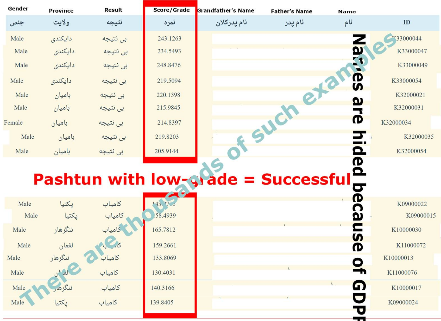 در کنار ده کرسی برای کوچی های پشتون، نسبت نابرابر تعداد کرسی ها در ولایات و نیز تقلب گسترده همراه با تهدید و خشونت خونین طالبان و داعشیان پشتون، اکثریت شدن پشتون ها در پارلمان تضمین می شود.