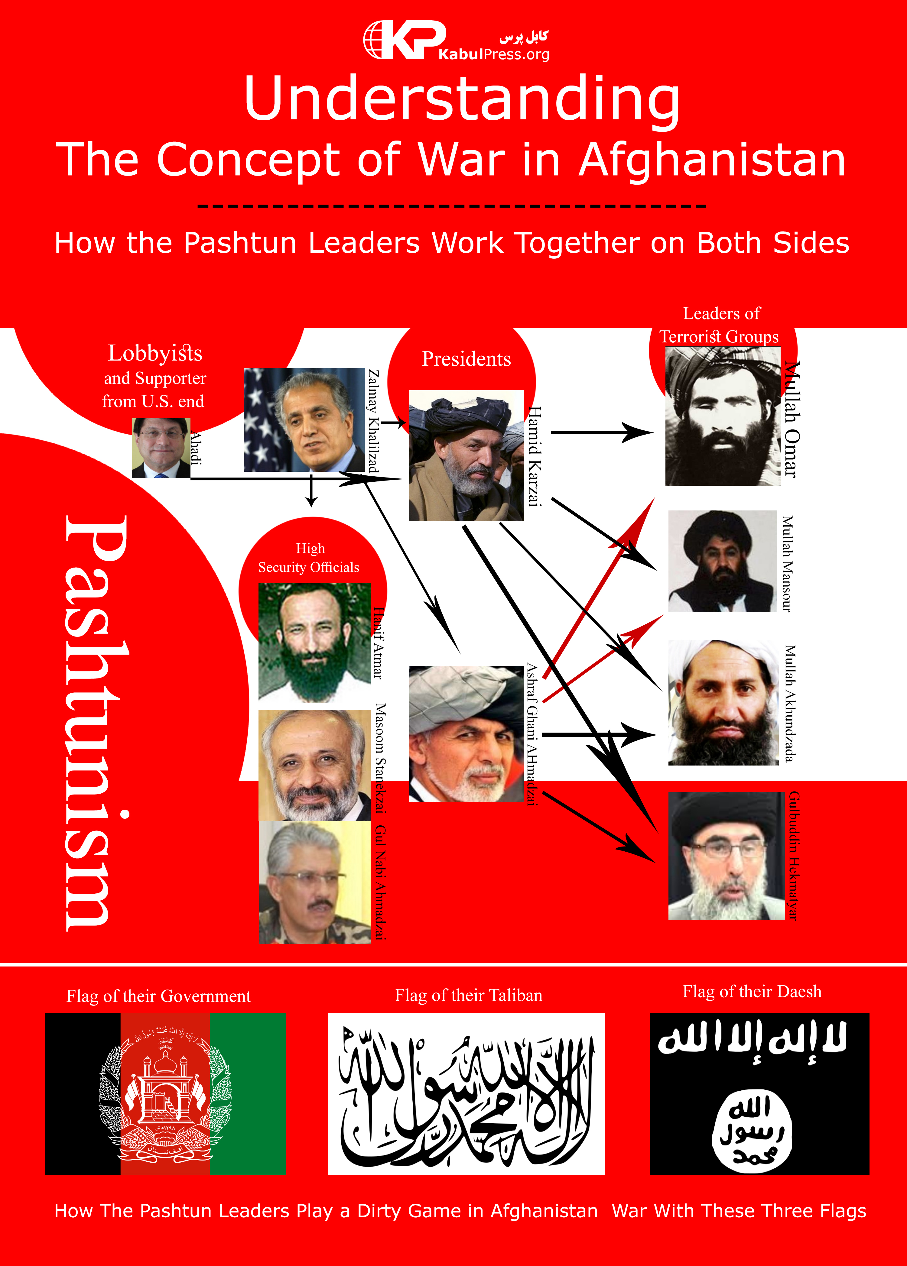 کابل پرس?: قبایل پشتون در دو صدسال اخیر همواره در جنگ با غیر پشتون ها بوده اند. در سیاست اصلی پشتونیزم، هزاره به گورستان، تاجیک به تاجیکستان، اوزبیک به اوزبکستان و تورکمن به تورکمنستان باید فرستاده شوند. این سیاست کثیف و خونین تاکنون به کشتار وسیع غیر پشتون ها و اشغال زمین های آنان توسط قبایل پشتون انجامیده است.