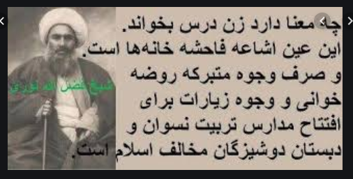 تمام مبلغان دین اسلام در تمام دورههای تاریخی سر و ته یک کرباس است. اگر نمیپذیرید به این جملۀ ملا فضلالله نوری از ملاهای شیعۀ دوازدهامامی در 110 سال پیش نگاه کنید: «چه معنا دارد زن درس بخواند. این عین اشاعۀ فاحشه خانههاست و صرف وجود متبرکۀ روضهخوانی و وجوه زیارات برای افتتاح مدارس تربیت نسوان و دبستان دوشیزگان مخالف اسلام است.» پس ریشه را باید زد وگرنه سرگرم شدن به شاخهبری وقتکشی است.