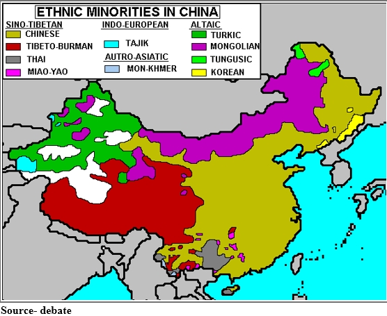 پنج منطقه خودمختار چین عبارت اند از تبت، مغولستان (درونی)، گوانجی (Guangxi)، ننگجیا (Ningxia) و سنجیانگ (Xinjiang) که هر یک دارای خودمختاری داخلی است و در کنار زبان « منددرین »، زبان های محلی رسمیت دارند.