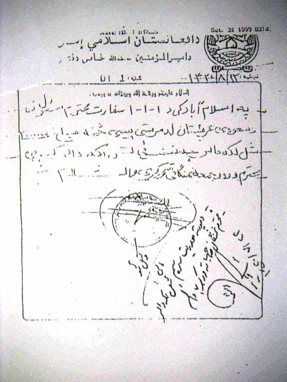 به مسئول محترم سفارت امارت اسلامی افغانستان در اسلام آباد