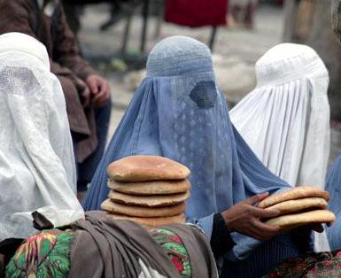 Women earn a living by selling home-baked breads in a market in Mazar-e-Sharif.