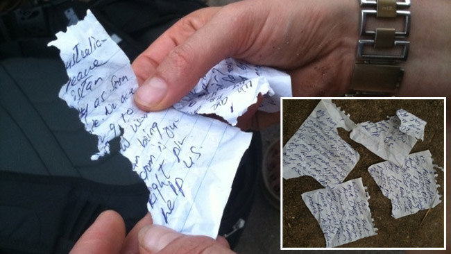 نامه پاره پاره شده یک پناهجو به رسانه ها/ او می گوید از غزنی ست. پدرش توسط طالبان کشته شده است. طالبان در ماه های اخیر بیش از ده تن را که غیر پشتون بودند، در این ولایت سر بریدند.