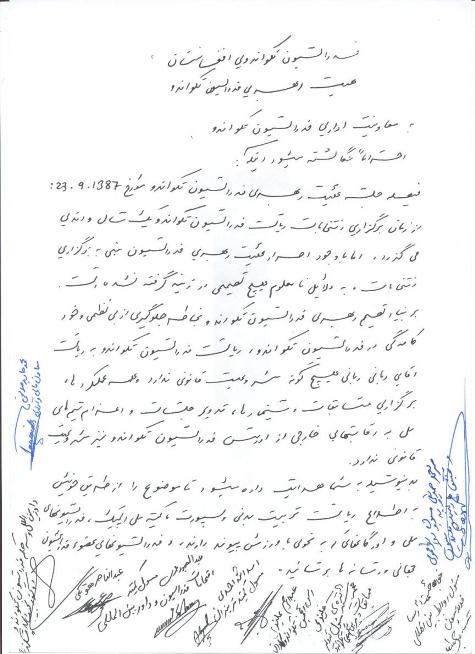 هیئت رهبری فدراسیون در جلسة مؤرخ 23 قوس سال 1387 خود فیصله کردند که از زمان برگزاری انتخابات ریاست فدراسیون تکواندو بیشتر از یک سال می گذرد و با وجود اصرار هیئت رهبری فدراسیون تکواندو و بخاطر جلوگیری از بی نظمی و خود کامه گی بیشتر در ریاست فدراسیون تکواندو، هیچ فیصله یی مبنی بر برگزاری انتخابات با دلایل مبهم و نامعلوم از طرف رییس پیشین فدراسیون تکواندو آقای غلام ربانی ربانی صورت نگرفته است.