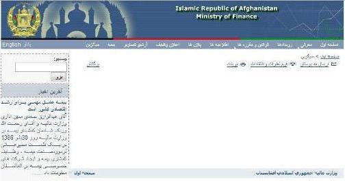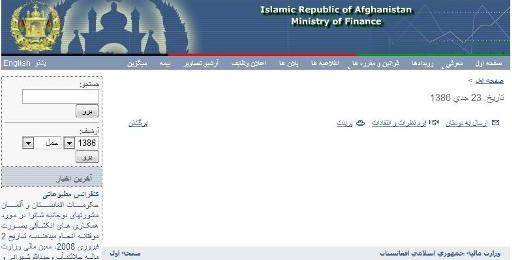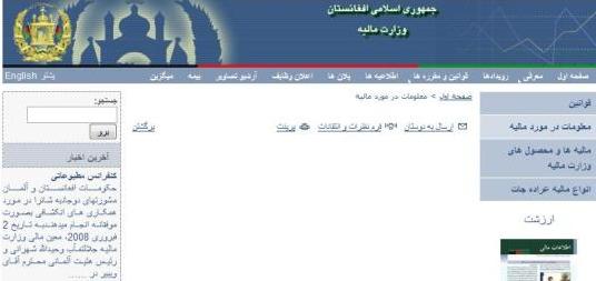 نمونه ای زيبا از صفحات سایت وزارت ماليه ی افغانستان