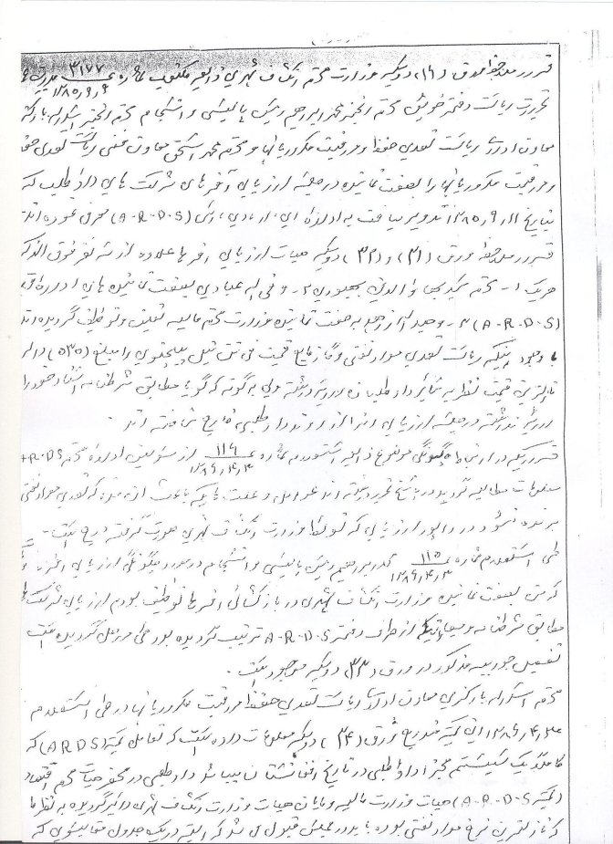 وزارت محترم انکشاف شهری به منظور تسخین مرکز گرمی مکروریانها به اساس مصوبه شماره 23 مورخ 17/07/1385 شورای محترم وزیران به وزارت مالیه هدایت میدهد تا مبلغ یک میلیون دالر را به منظور خریداری تیل مورد ضرورت به دسترس وزارت انکشاف شهری قرار دهد تا از طریق وزارت محترم اقتصاد