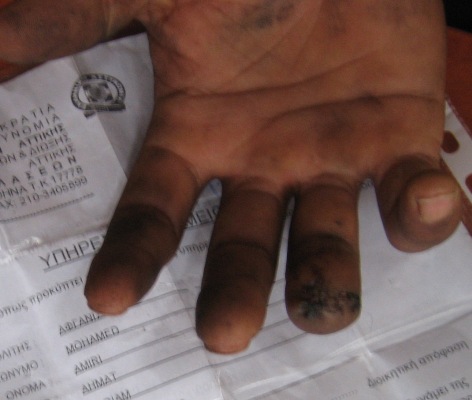 نفر سوم که برای مصاحبه به داخل خیمه آمد سمیر از ولایت مزارشریف است او یک انگشت دستش را درهمین روزها ازدست داده است وتمام بدنش کبود است. ازسمیر پرسیدم که تورا به این وضعیت رسانده است اوباچشمان پرازاشک وگلوی پرازعقده چندین بار تلاش کرد حرف بزند ولی نتوانست. واقعن همه دوستانم وقتی متوجه سمیرشدند ناخودآگاه اشکهایشان جاری شد. سمیررا دربغل گرفتم وگفتم این تنها وضعیت تو نیست هرکسی میتواند با دیدن توبه وضعیت افغانستان پی ببرد. او اشکهایش را پاک میکنند ومیگوید این وضعیت خیلی بی غیرتم ساخته است وادامه میدهد همه بچه ها روزها درپشت دیوارهای بندر صف میکشند تا کدام کامیونی درنزدیکی دیوار توقف کند وبعد هرکسی نوبتش رسیده بود شانسش را امتحان میکند وکوشش میکند با پریدن ازروی کتاره ی آهنی که تقریبا سه متر ارتفاع دارد خودرا به درون فنس fans”" پرتاب نموده ودرزیرکامیون خودرا جاسازی نماید این فقط راهی است که بچه درپیش دارد. ماندن دریونان و نوشیدن زهر و یا رسیدن به کشورهای دیگراروپایی، فقط رفتن درزیر کامیون که آنهم خطر مردن صد درصد را درپی دارد. یا رسیدن یا مرگ. هرکسی برای پریدن داخل فنس ورسیدن درزیرکامیون فقط دو یا سه دقیقه وقت دارد درغیرآنصورت کوماندوهای وحشی یونان سرمیرسند آنوقت باید زیر لگد و باتوم های آنها تکه تکه شوی. من وقتی میخواستم ازروی نرده به داخل بپرم کوماندو سررسید وازترس اینکه شکمم را سرنیزه های نرده سوراخ وبدنم مثل گوشت کبابی روی آن نماند بااحتیاط میخواستم دوباره خودرا به بیرون پرتاب کنم ولی کوماندوها سررسیدند، یکی ازآنها که باتوم به دست داشت بافشار تمام باتوم را روی دستتم کوبید اول نفهمیدم. وقتی به بیرون رسیدم متوجه که یکی ازانگشتان دست چپم ازنیمه قطع شده است. با دیدن آن ازهوش رفتم وقتی به هوش آمدم دوستانم مرا بدون کدام آمبولانس به نوبت روی کولهای های به شفاخانه رسانده بود، بلافاصله قصابی که اسمش را داکتر گذاشته بودند سررسید اوبدون کدام داروی بی حس کننده استخوانهای شکسته انگشتم را که روی دستم آویزان شده بود با انبور کشید ومن ازهوش رفتم. دوباره وقتی به هوش آمدم شب بود ودوستانم مرا به خیمه انتقال داده بود. حال چندین روز است که درد میکشم وهیچ پولی ندارم که حتا یک داروی بی حسی بخرم تاشبها کمی بتوانم بخوابم. خیلی درد آوربود. شما فکرکنید نقض حقوق بشرتاچه اندازه صورت گرفته است. سمیرباچشمان پرازاشک ورنگ وروی پریده ادامه میدهد ازدوستانت که حقوقی هستند سوال کن که آیا قوانین حقوق بشر برای افغانی هم هست یانه؟