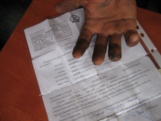 اول قرار بود ساعت دوازده درتظاهراتی که شب گذشته توسط حزب چپی یونان دردفاع از مهاجرین ترتیب داده شده بود شرکت کنیم ولی صف طولانی و داستان آوارگی که هرلحظه من و دوستانم را به گریه وامیداشت ازشرکت درآن تظاهرات منصرف ساخت. بعدازگذشتن یک ساعت مجبور شدیم باتماس به دفتر وکالت بین ازآنها تقاضای کمک نماییم زیرا با آنکه گروپ هفت نفری ما مصروف مصاحبه کردن بودند ما نیاز به افراد دیگری داشتیم یک جهان تشکر از محترم وکلای بین المللی که به محض تماس ما بعد ازنیم ساعت دونفروکیل را به کمک ما فرستادند.